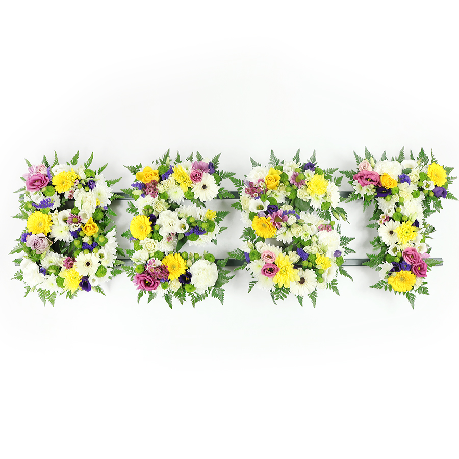 Our stunning tribute bouquet combines fresh gerberas, chrysanthemums, lisianthus, roses, hypericum, and vibrant greenery to create a unique and heartfelt display. Each flower is hand-selected to ensure exceptional freshness and quality, making it a perfect gesture for any special occasion.