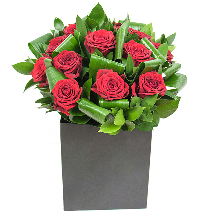 Immerse yourself in a radiant display of nature with our meticulously crafted flower arrangement. This stunning bouquet features brilliant scarlet roses paired with rich aspidistra leaves and graceful ruscus accents, creating an unforgettable ambiance. Every flower is hand-picked at its peak for outstanding freshness and beauty, ensuring a truly premium floral experience.
